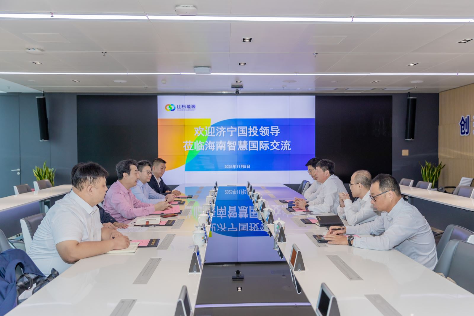 在山东能源(海南)智慧国际科技发展有限公司,虢洪增一行与该公司总经理刘光进交流座谈。刘光进全面介绍了山能智慧国际的产业发展、“十五五”期间重点发展目标以及海口江东新区“总部经济区”的战略规划与发展前景。虢洪增详细介绍了多宝网页版登录入口在金融投资、现代贸易等领域的产业优势和发展成就,对山能智慧国际在智慧能源领域的技术创新和市场拓展成果表示高度赞赏。双方围绕能源贸易协同、跨境业务合作等方面达成初步合作意向,一致表示将建立常态化沟通机制,加强与山能智慧国际及海南能源交易中心的深度合作,共同为海南自贸港能源产业高质量发展贡献力量。同时,进一步拓展合作空间、深化合作内容,对康养项目融合方面探索多元化合作模式、拓宽合作边界,为后续务实合作达成多项共识。